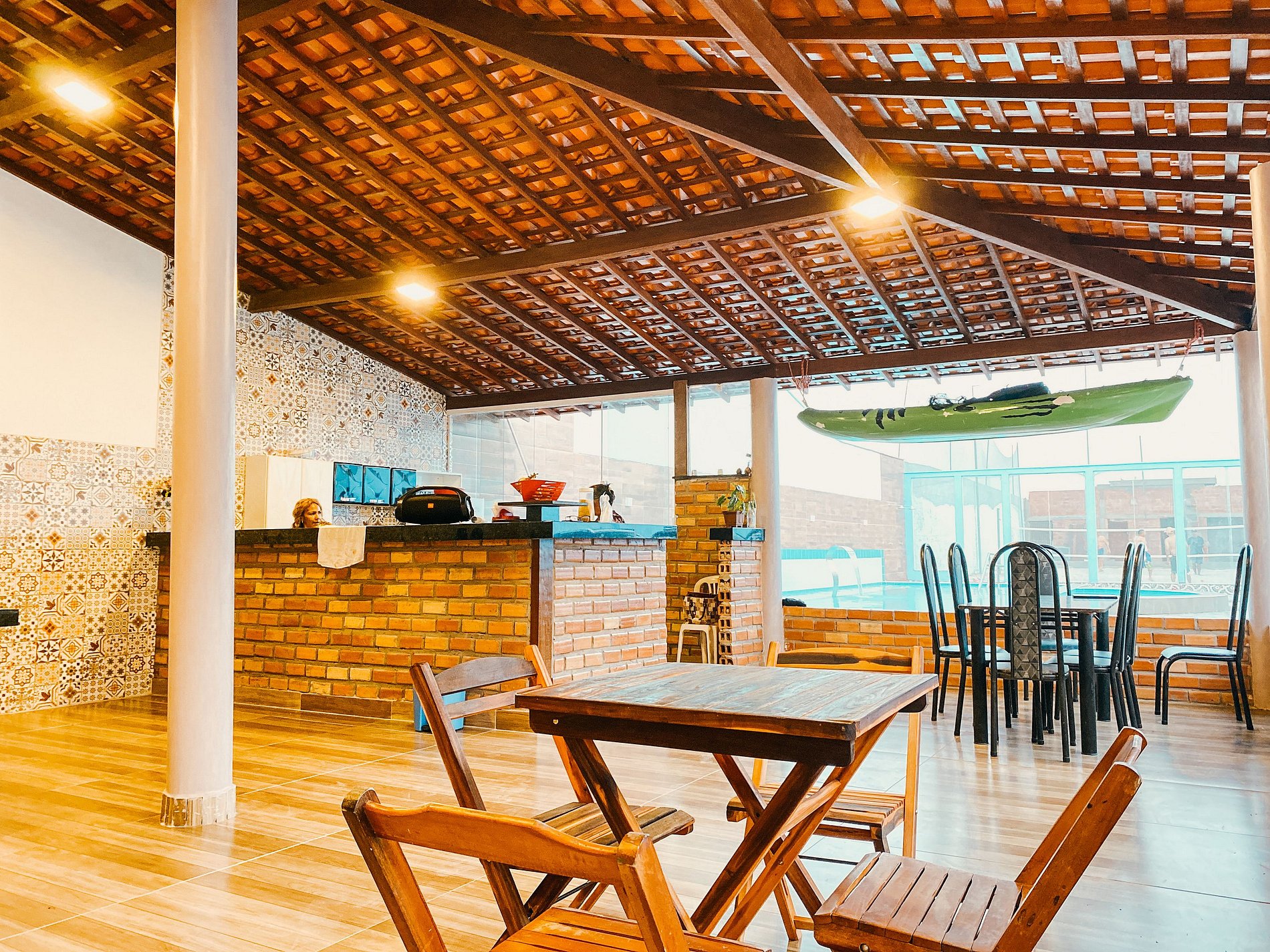 A área externa da pousada é um convite ao lazer e à diversão. Mergulhe na nossa piscina cristalina ou desafie amigos e família em uma de nossas quadras de beach tênis. A nossa área de lazer é projetada para entreter todos os gostos e idades, garantindo momentos de alegria e descontração.